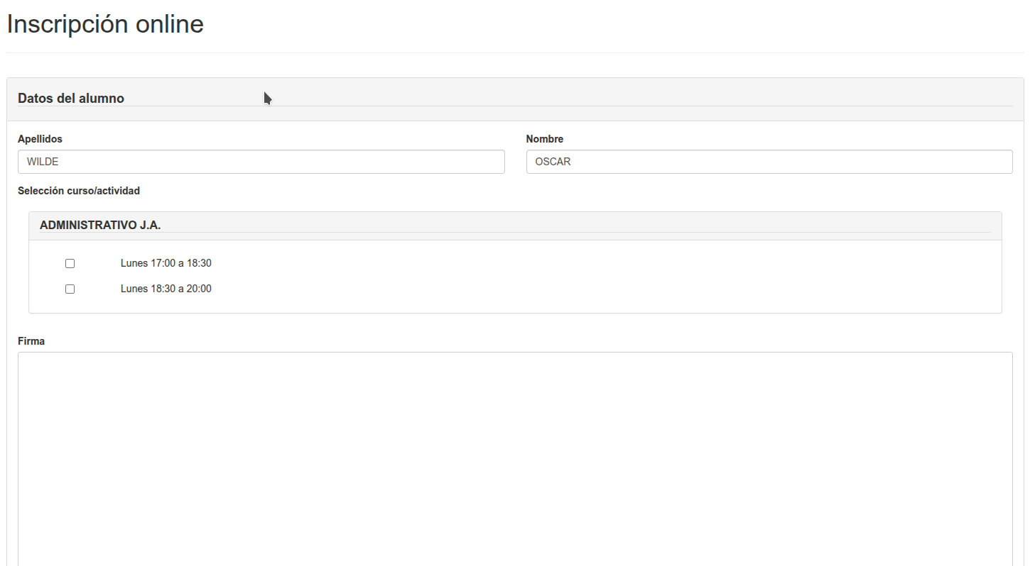 Ahora podemos hacer que los alumnos actuales, mediante un enlace con un token identificativo, vean una inscripción 100% personalizada, con sus datos cubiertos y, lo más importante, con una selección de cursos basada en lo que el sistema recomienda según lo último que hayan cursado en la academia.