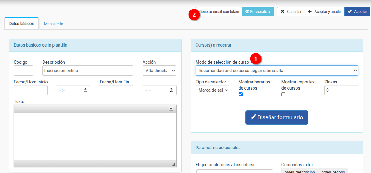 Ahora podemos hacer que los alumnos actuales, mediante un enlace con un token identificativo, vean una inscripción 100% personalizada, con sus datos cubiertos y, lo más importante, con una selección de cursos basada en lo que el sistema recomienda según lo último que hayan cursado en la academia.