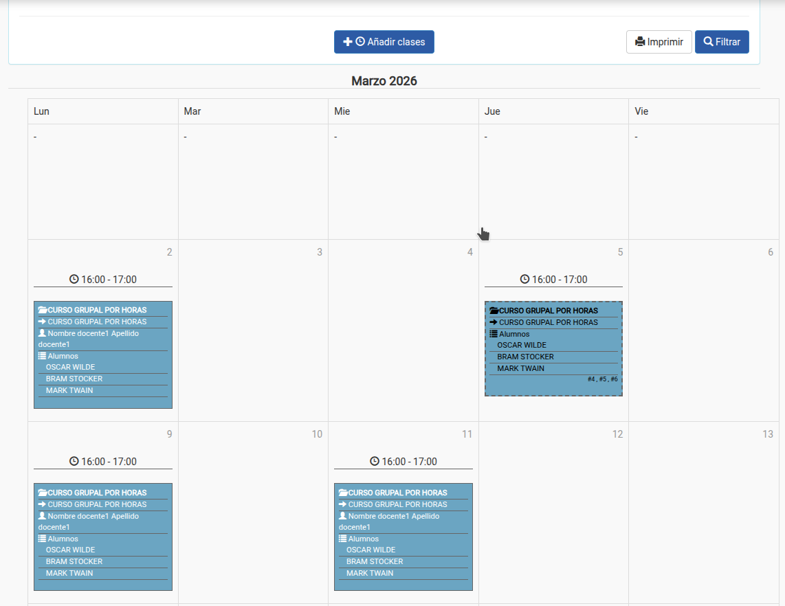 Con esto la clase se moverá de su posición inicial a la siguiente. La clase aparecerá en el día del cambio.